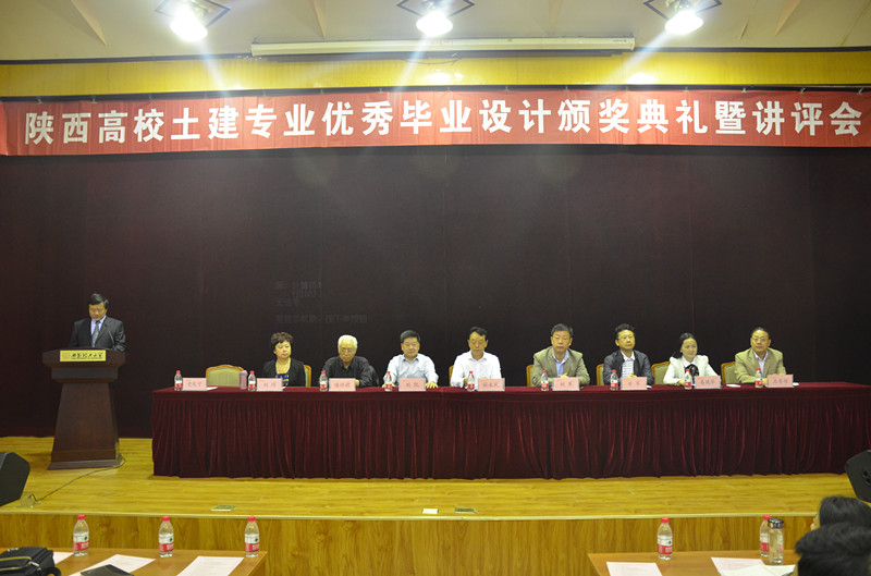 陕西省土木建筑学会理事长薛永武、西安理工大学党委副书记刘凯、西安理工大学副校长刘军、中国建筑西北设计研究院顾问总工陈怀德、中国建筑西北设计研究院副总建筑师安军、陕西省土地工程建设集团勘测规划设计院副院长刘琦、陕西省土木建筑学会秘书长易凤华、我校bat365中文官方网站院长党发宁、院党委书记王青耀、西安理工大学教务处副处长高新勤、bat365中文官方网站副院长范留明、赵钦等出席了本次会议。来自西安建筑科技大学、长安大学、西安交通大学、西安科技大学、西安工业大学等高校土建专业优秀毕业设计获得者代表和指导教师代表以及我校师生共260余人参加了此次颁奖典礼暨讲评会。会议由我校bat365中文官方网站院长党发宁主持。