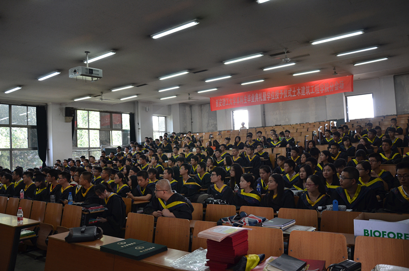 毕业典礼在雄壮的国歌中拉开序幕。院长刘云贺首先致辞。刘云贺教授代表学院向全体2016届毕业生们顺利完成本科学业表示祝贺,对2016届毕业生们通过四年学习取得的成绩表示肯定,为学校培养的毕业生们成为国家发展和社会建设的贡献者感到骄傲。同时,刘云贺教授希望毕业生们在日后的工作中不忘初心,艰苦奋斗,传承精神,求实创新,心存感恩,在工作和生活中实现自己的人生价值。院党委书记党发宁宣读了《关于表彰2016届优秀毕业生和优秀毕业生干部的决定》。党发宁教授祝贺2016届的全体毕业生们顺利毕业,对获得2016届“优秀毕业生干部”和“优秀毕业生”荣誉称号的毕业生们给予肯定与赞扬,希望他们在日后的学习工作中继续做好模范带头作用,保持自强不息的精神。接着,教师代表张志强老师代表全体教师向2016届全体毕业生送去祝福,希望毕业生们能够将自己的所学才能发挥出来,为自己的梦想奋斗,在未来的工作中能够经受磨练,步步高升。毕业生代表、校优秀毕业生邢芳芳同学代表全体毕业生发言。她代表全体毕业生向学校以及老师们表示感谢,大学时光让同学们得以茁长成长,现在同学们取得的成就离不开老师们的谆谆教诲,她呼吁毕业生们在日后不忘感恩母校,并且继续发扬刻苦奋斗的精神,在日后的人生道路上坚定的走下去。