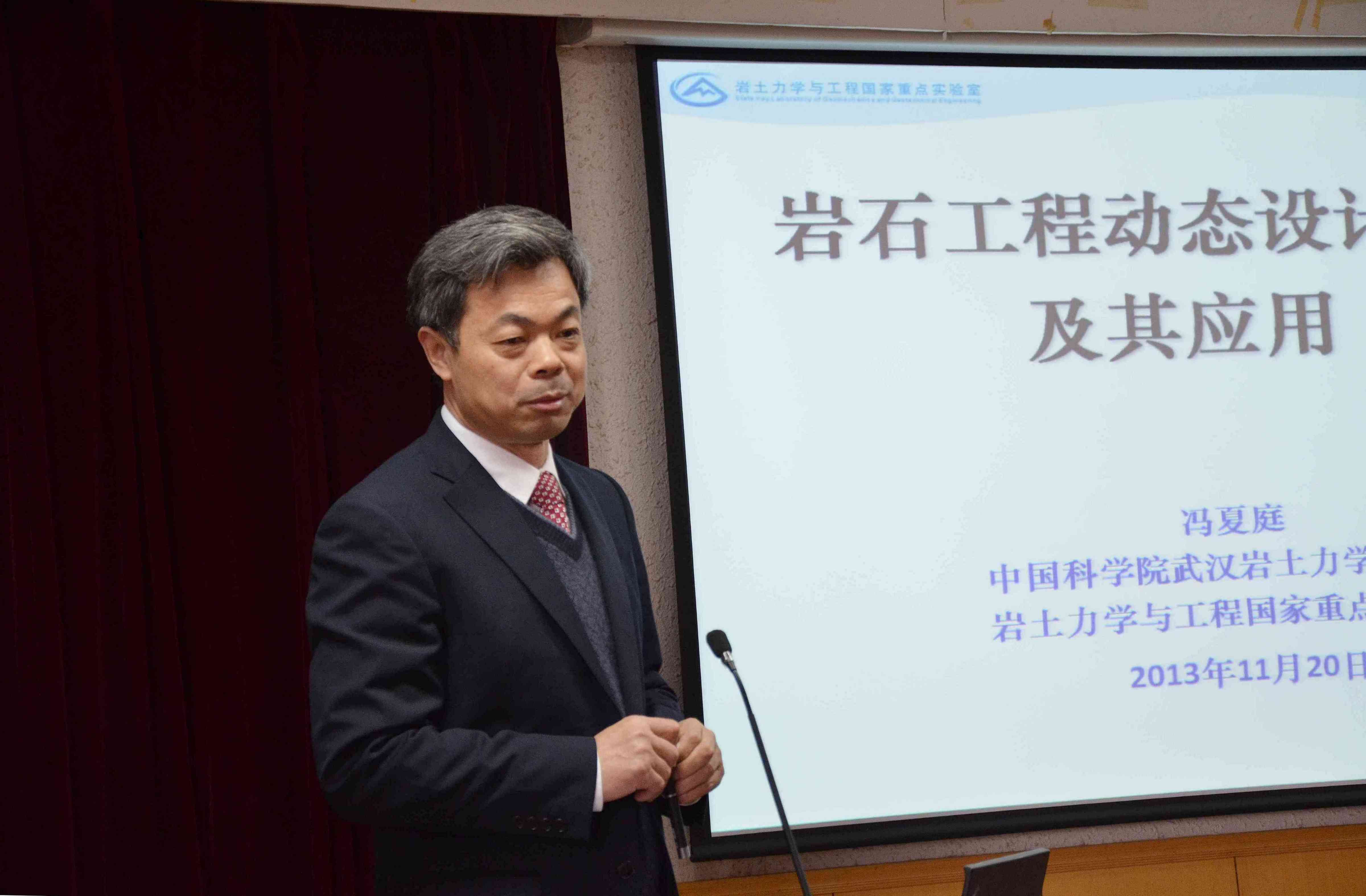 报告会上,冯夏庭研究员做了题为“岩石工程动态设计方法”的学术报告,重点介绍了岩石工程设计面临的机遇、挑战与动态设计方法,并结合具体实例讲解了岩石工程动态设计方法具体过程。“岩石工程动态设计方法”由国际岩石力学学会主席、岩土力学与工程国家重点实验室主任冯夏庭研究员领导的创新团队与英国皇家工程院院士John Hudson教授联合提出并建立,已在国内外几十个大型水利水电、交通、矿山、市政、国防工程中获得了成功应用。