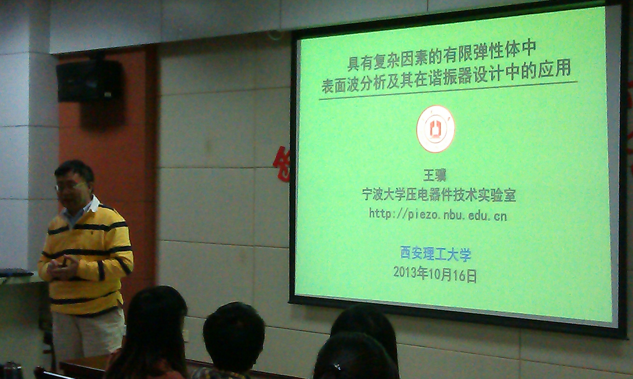 应bat365中文官方网站工程力学系邀请,美籍华人王骥教授(宁波大学钱江学者特聘教授)于10月16日下午在我校曲江校区教9楼617教室做了题为“具有复杂因素的有限弹性体中表面波分析及其在谐振器设计中的应用”的学术报告。力学系教师及研究生和高年级本科生参加了报告会。