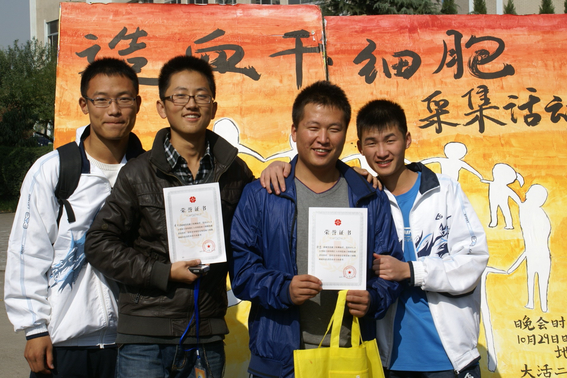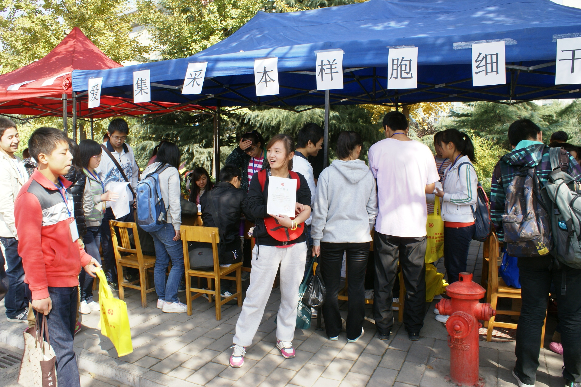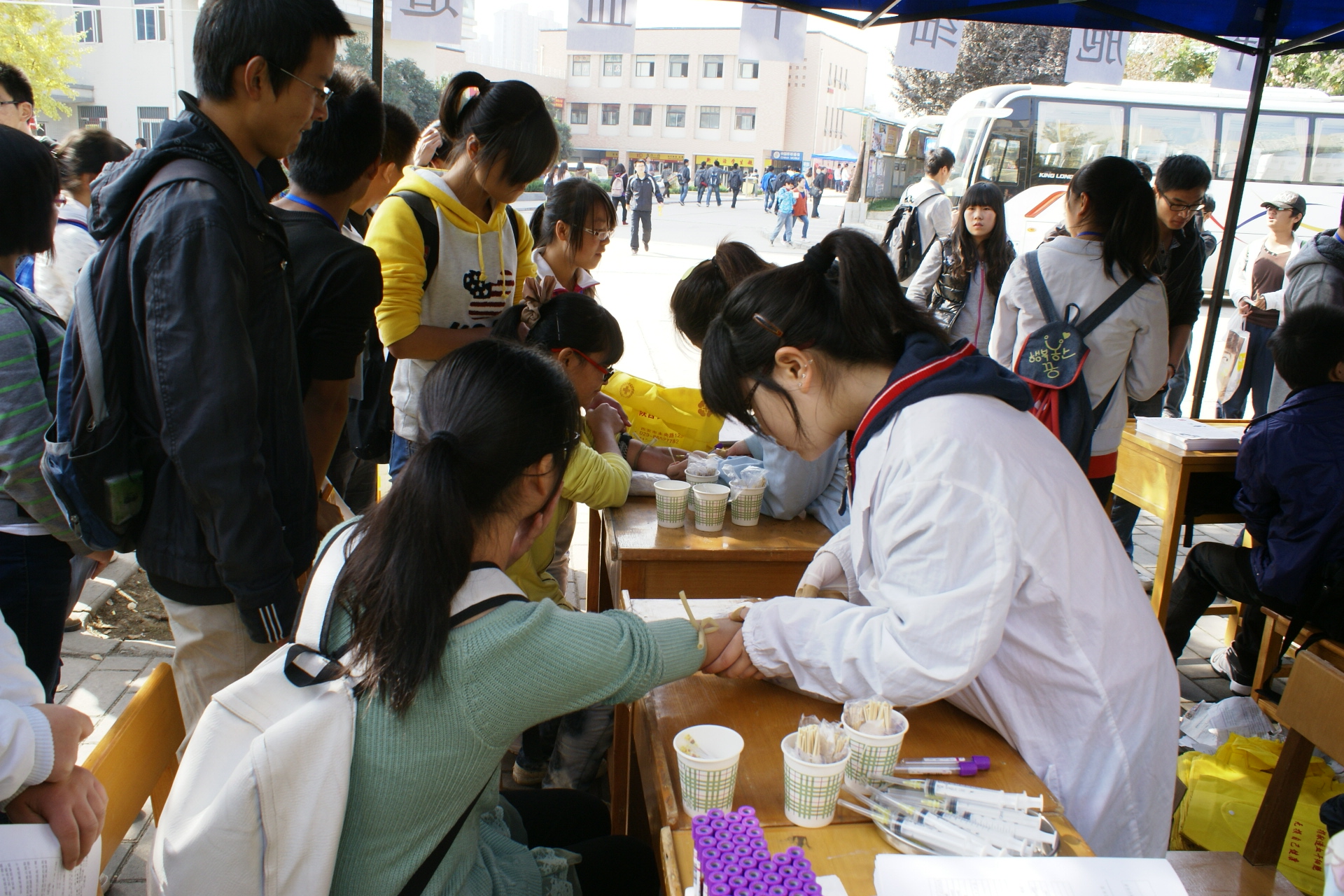 在经过前期的大力宣传和精心筹备以及举办的爱心公益晚会,我院联合陕西省红十字会于2012年10月30日在曲江校区举行了造血干细胞样本采集活动。