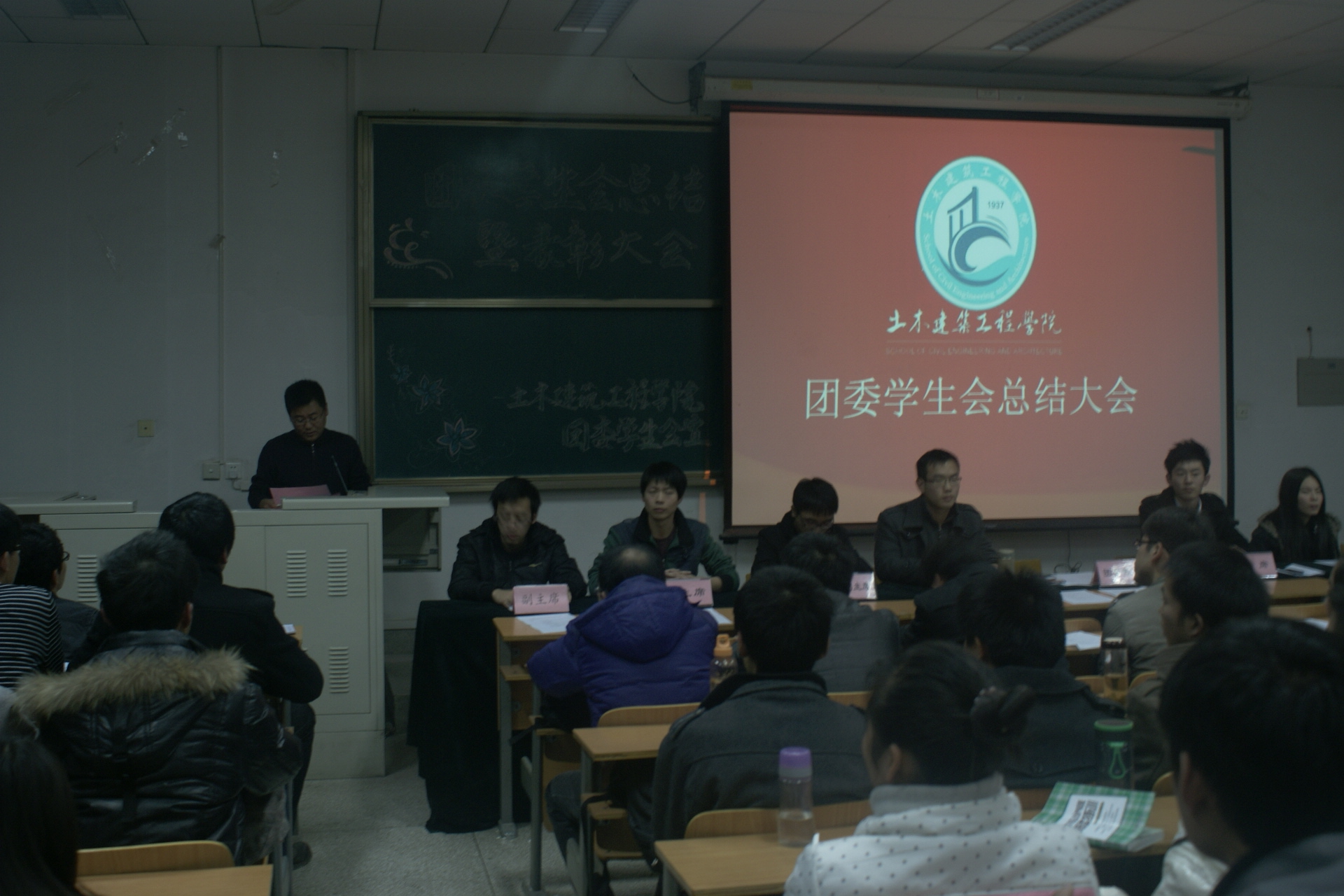 2012年12月10日晚7点,我院在10-204举行了2012年团委学生会表彰暨总结大会。团委书记王宗强老师、学生会主席团全体成员及学生会成员200余人出席了本次大会。