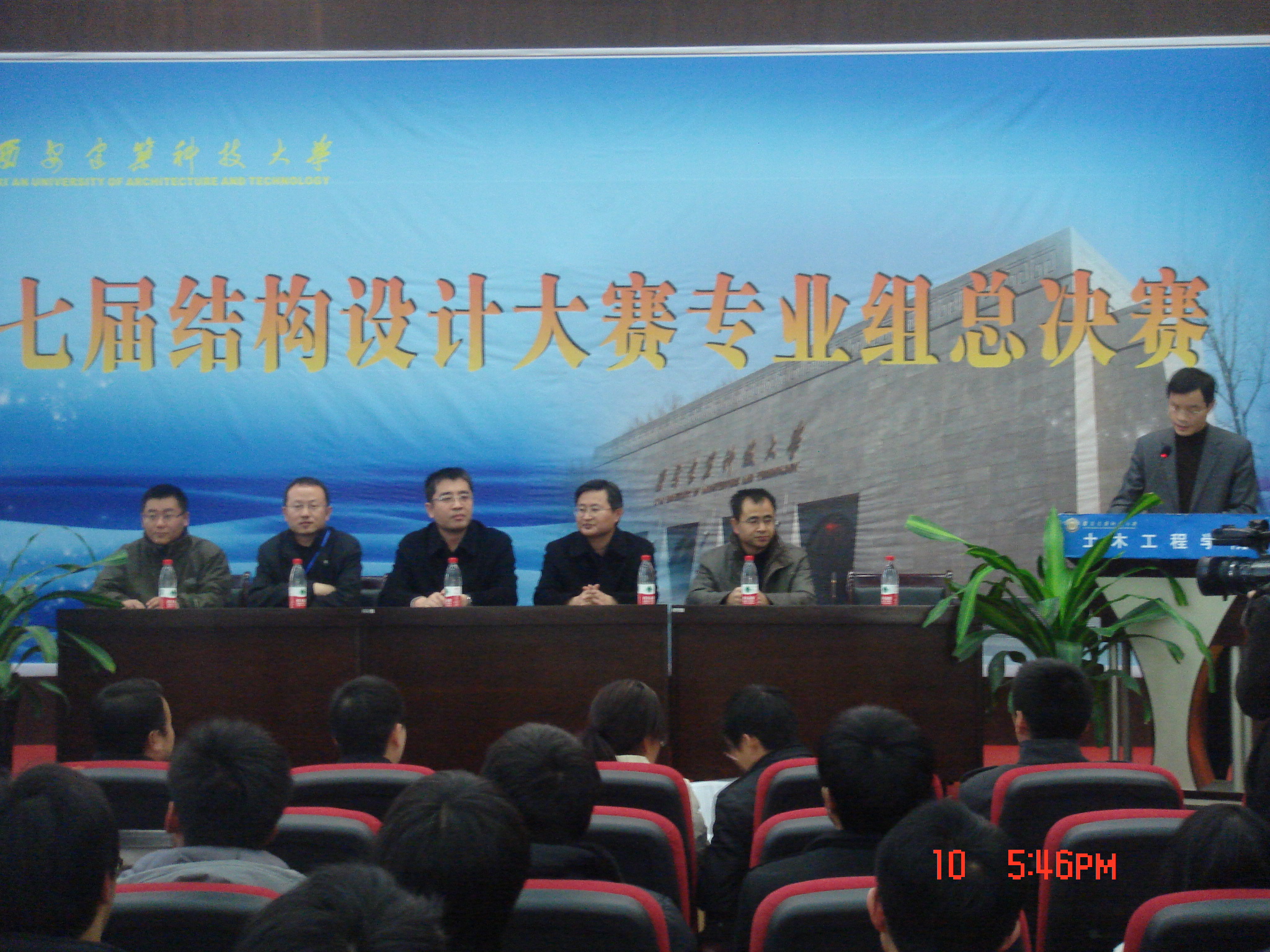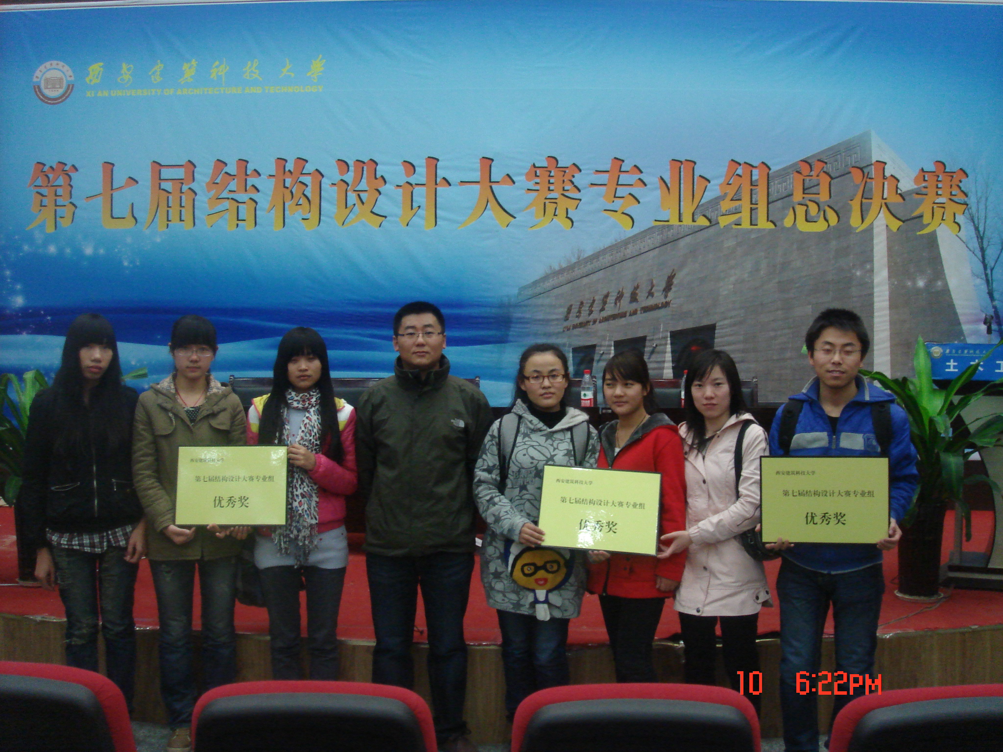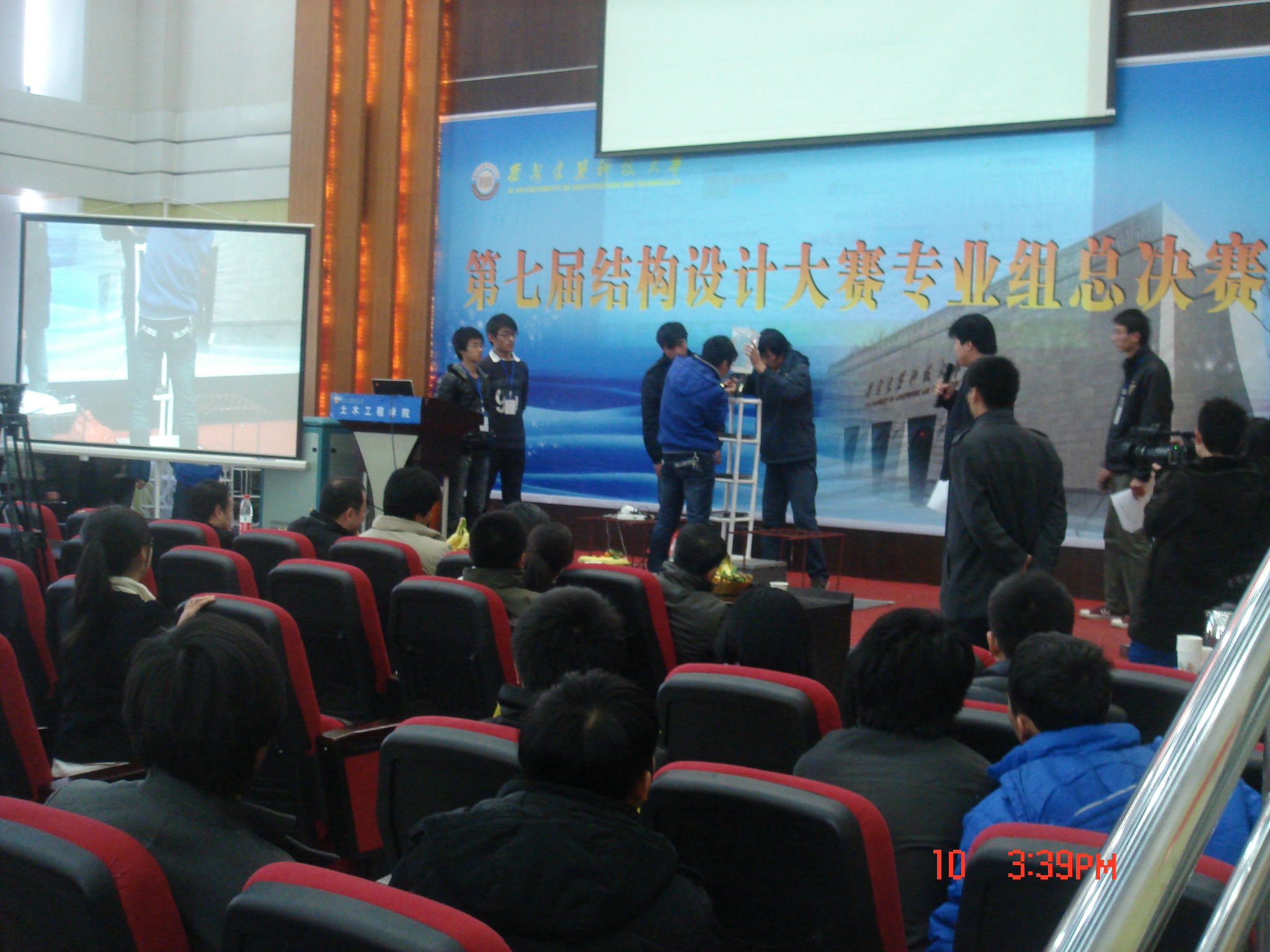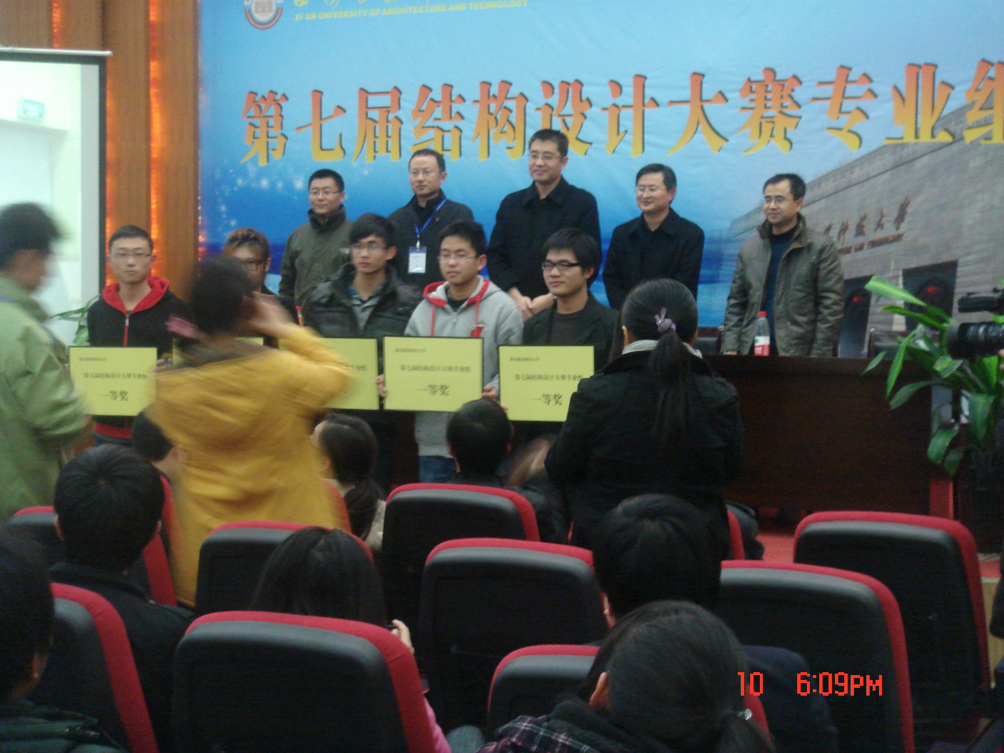 2011年12月10日下午2点由西安建筑科技大学土木工程学院主办的第七届结构设计大赛专业组决赛在建筑科技大学隆重开赛。应西安建筑科技大学土木工程学院的邀请,我校bat365中文官方网站组队参加了大赛,并获得好成绩。