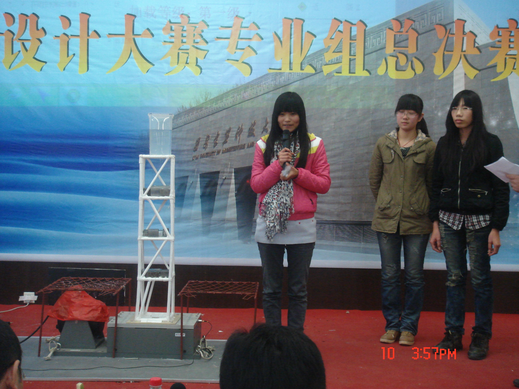 专业组共有80余支队伍参赛,包括西安交通大学、长安大学、西北工业大学、西安理工大学等代表队。我院精心组织了三支队伍参加此次比赛,由院团委书记王宗强老师带队,并应大赛组委会的邀请为获奖选手颁奖。此次结构设计大赛分为答辩、加载和模拟汶川地震波三大部分。我院三只代表队为了更好的参加此次比赛,在专业老师的指导下,每天认真地投入到作品的制作中,并严格按照比赛要求制作,利用所学知识不断完善作品。最终,我校三支代表队全部获得优秀奖。其中,在模拟汶川地震波环节中,由土木101班雍馨、黄麒、李雪艳组成的西安理工大学第二代表队所做作品达到了全部作品中地震波频率最高值,收到了全场观众的热烈掌声和专家评委的高度评价。