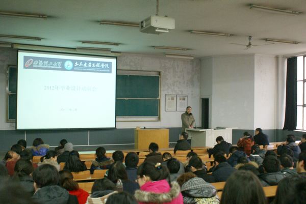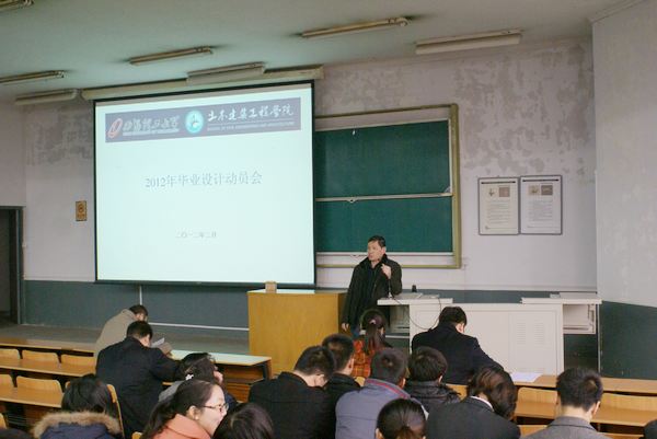 为全面提高我院毕业设计的质量和水平,进一步做好毕业设计工作,我院于2012年2月27日下午2点30分在6-501教室召开了毕业设计动员大会,院党委书记师俊平、副院长范留明、院党委副书记李红英、各系所主任、毕业设计指导教师,2012届的全体毕业生参加了大会。