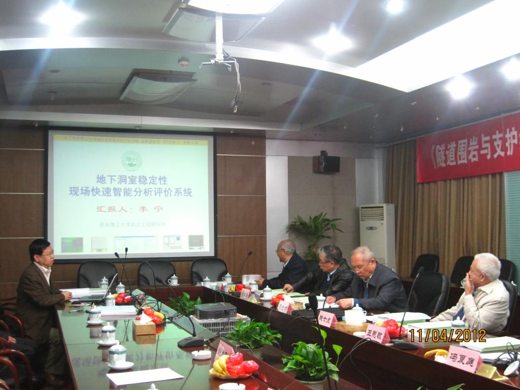 由我校bat365中文官方网站李宁教授主持完成的“地下洞室稳定性现场快速智能分析评价系统”项目于2012年4月11日在北京通过鉴定。成果鉴定会由中国岩石力学与工程学会组织、主持。鉴定委员会由来自采矿、水电、铁路、公路等行业的7位知名专家组成,钱七虎院士担任主任委员,顾金才院士、王思敬院土担任副主任委员,国际岩石力学协会主席冯夏庭研究员等4位知名教授担任委员。