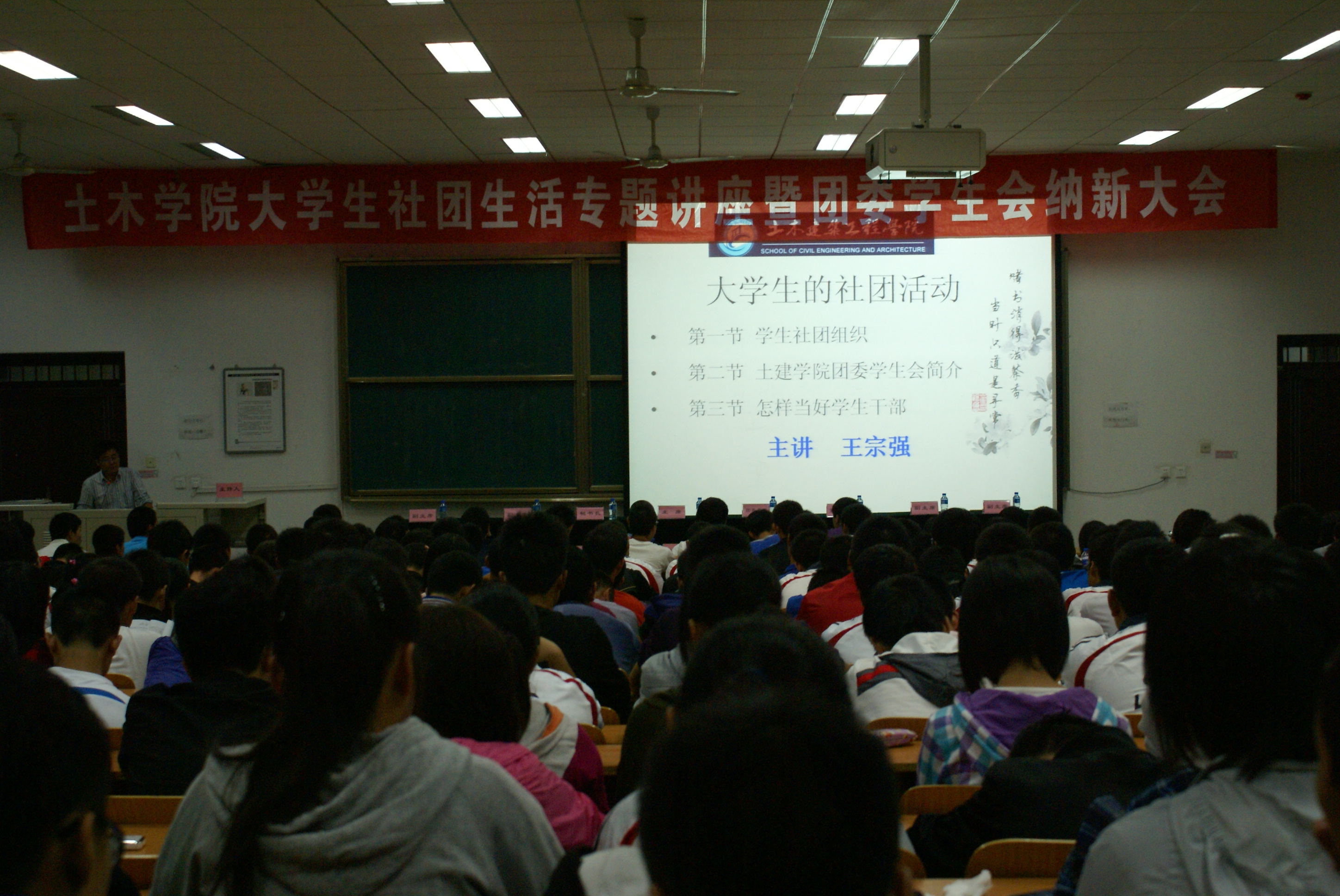 2011年9月6日晚,bat365中文官方网站在10-401隆重举行大学生社团生活专题讲座暨团委学生会纳新大会。
