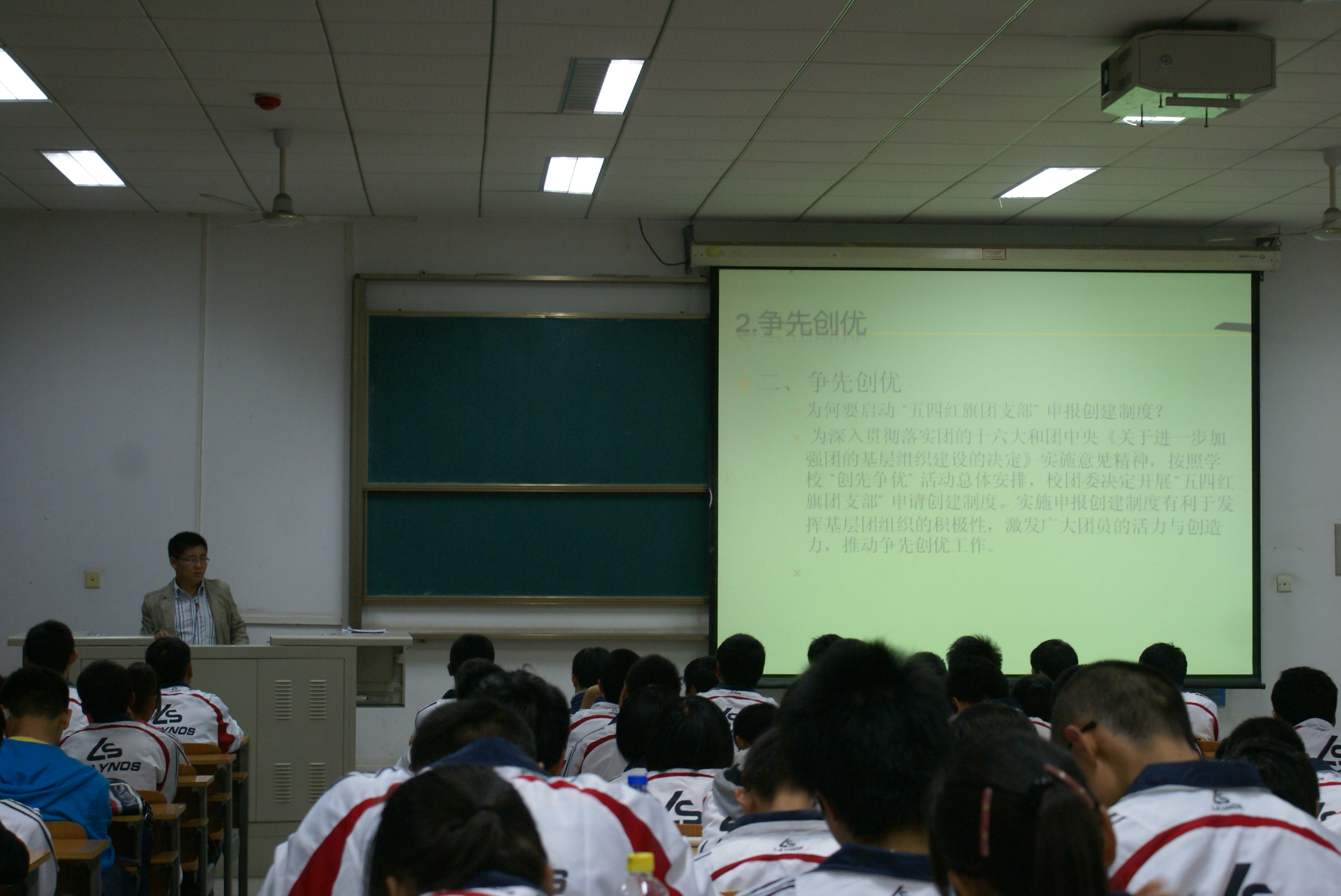 大学的第二课堂是高等教育的重要组成部分,是学生学习知识的重要渠道和不可或缺的实践环节,是第一课堂的有益补充与延伸,对大学生的综合素质、创新能力的培养起着重要作用。团委书记王老师为2011届新生主要介绍了组织创优、校园文化、实践育人、科技创新、学生服务等五大篇章。