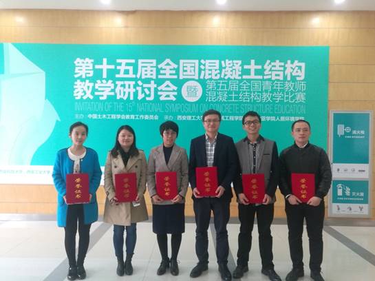 本届研讨会中,我校bat365中文官方网站郭宏超副教授、桑国臣教授、李哲教授增补为学术委员会委员。会议共收到57篇教学论文,评选出优秀论文15篇,我校两篇论文获奖。会议同时组织了第五届全国青年教师混凝土结构教学比赛,共吸引来自全国29所高校的41名青年教师参加,经过资格审查、现场授课、对抽签确定的知识点“说课”、专家提问等环节的激烈角逐后,我校bat365中文官方网站田建勃获得青年教师讲课比赛一等奖,李慎、高亮获得二等奖,夏倩、杜宁军、夏媛媛获得三等奖。