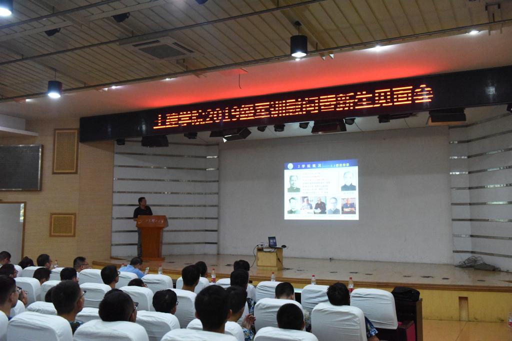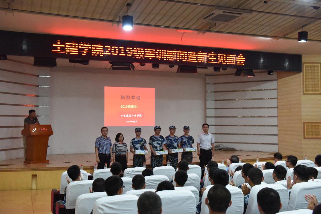 首先,党发宁院长向2019级学生详细介绍了学校、学院的历史沿革和学院目前的概况;接着,副院长范留明介绍了学分制、选课等教学方面的内容;然后,王青耀书记向承训官兵表达了感谢、向进入学院学习的同学们表达了祝贺,并对同学们如何在大学树立目标、提升自我提出了具体要求。最后,院领导为参加军训的官兵及学生送上了慰问品。