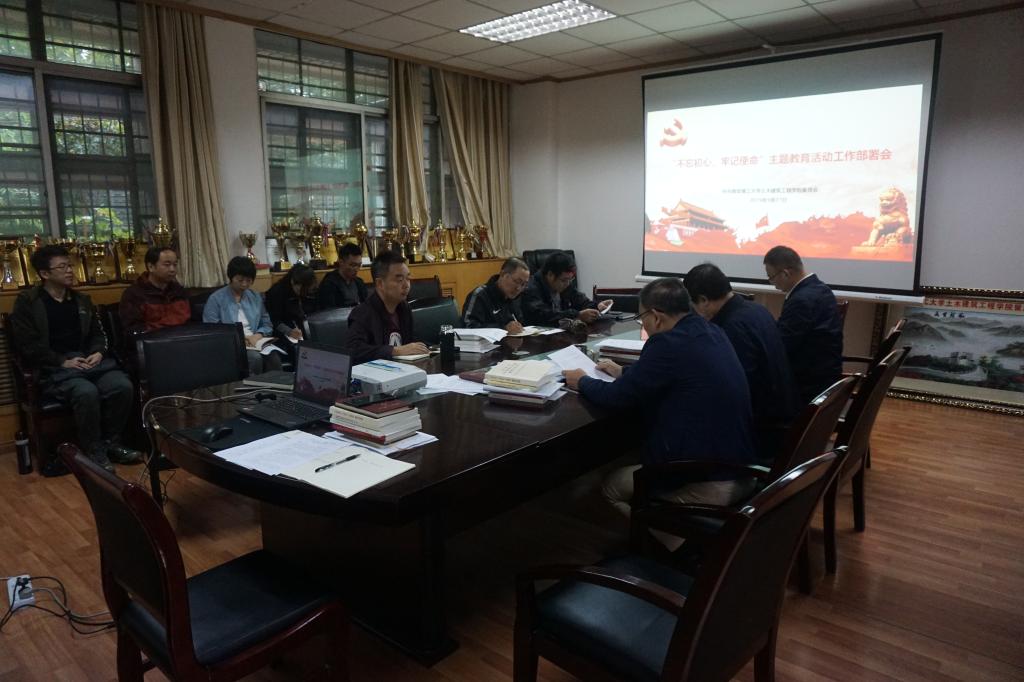10点10分,土建学院召开了“不忘初心、牢记使命”主题教育工作部署会。根据学校工作安排,院党委制定了《关于开展“不忘初心、牢记使命”主题教育的工作方案》,确定了以王青耀为组长的学院主题教育领导小组,明确了主题教育期间学院的工作部署。会议要求学院全体党员高度重视,认真组织,统筹兼顾,注重实效,严格纪律,完善制度,注重宣传,营造氛围,积极参与到此次主题教育中,在各项环节中认真学习、扎实研讨、检视反思、认真整改。
