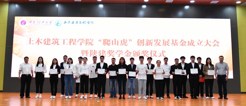 日前,“学史力行办实事,砥砺奋进谱新篇”土建学院建院10周年系列活动之“‘爬山虎’创新发展基金成立大会暨‘陕建奖学金’颁奖仪式”在曲江校区图书馆报告厅举办。