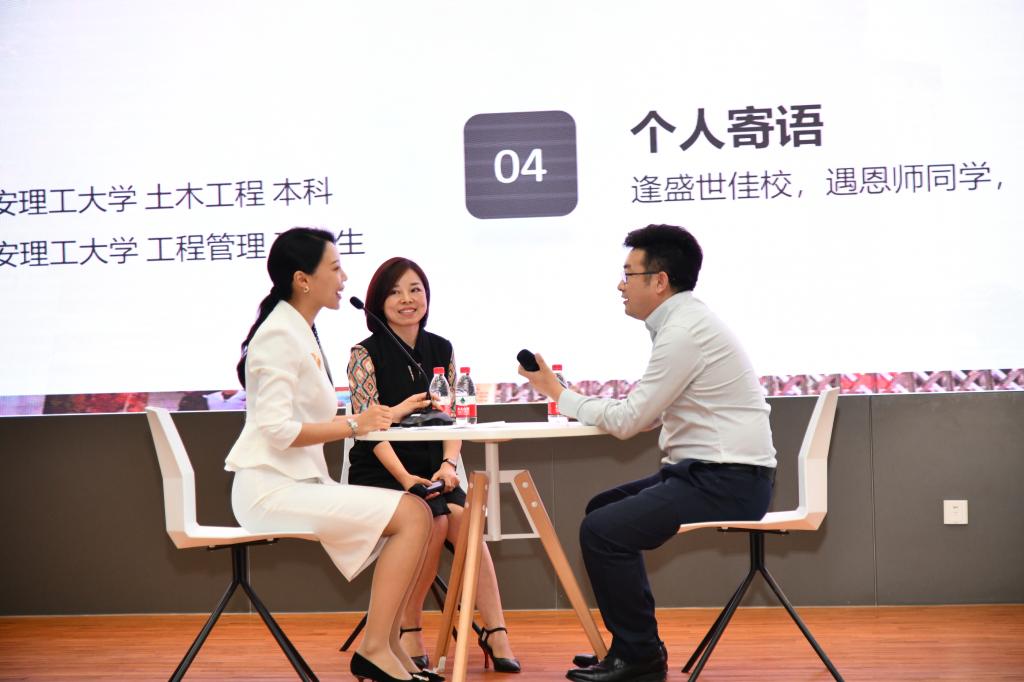 在采访环节,校友杨同生、李辉、刘世鑫分别回顾了在校学习、生活的美好瞬间,表达了对学校及老师的感激之情以及将来会继续用实际行动回馈母校、奉献社会,并且三位校友与在场学生进行了互动,耐心解答了同学们关于行业发展、就业规划等问题。西安三好软件技术股份有限公司董事长张巍作了发言,他回顾了自己与西安理工大学之间的渊源,并作为捐赠企业代表,表示“爬山虎”基金会的成立能够加深校友、企业与学校之间的联系,他也会一如既往地为支持学校的发展。