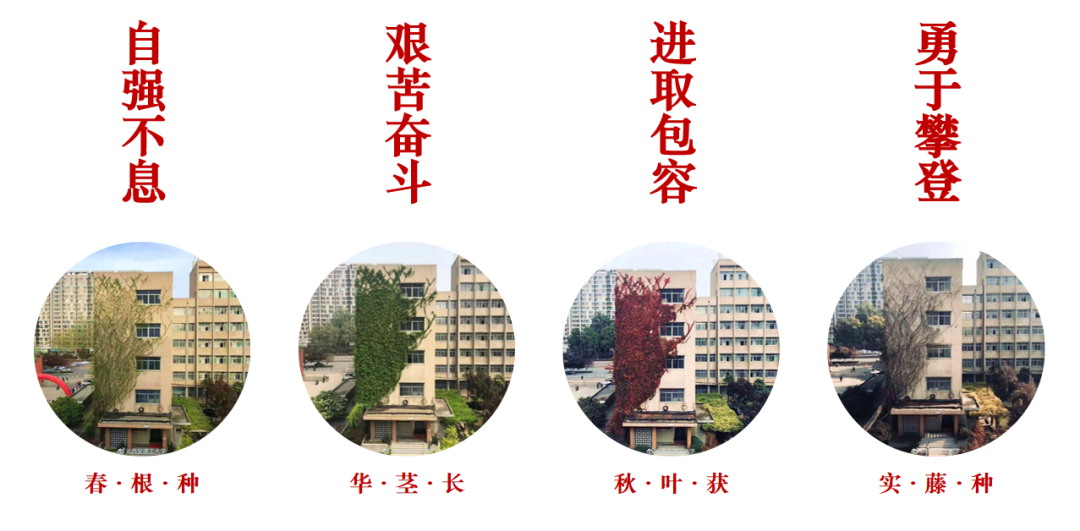 爬山虎现位于bat365中文官方网站所在的教四楼的北楼,是学校于1990年种下,历经30年,爬山虎茁壮成长、枝繁叶茂,显现了一种“艰苦奋斗,自强不息,进取包容,勇于攀登”的精神。