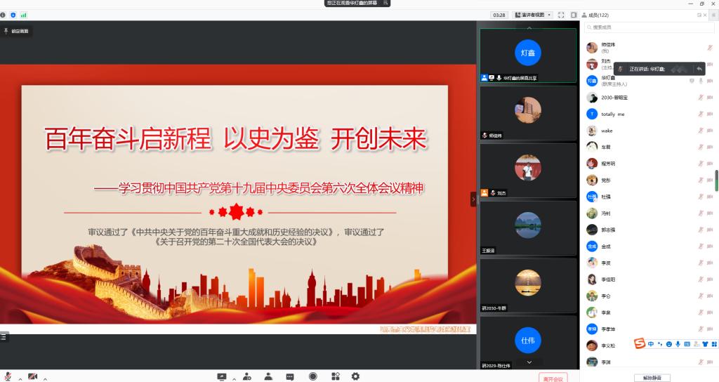 华校长以《百年奋斗启新程 以史为鉴 开创未来》为题,回顾了十九届一中全会至十九届五中全会,并对十九届六中全会概况作了详细介绍,从“见证历史时刻”、“创造伟大成就”、“坚持宝贵经验”、“不负伟大梦想”四个方面系统阐述了十九届六中全会的公报内容,对十九届六中全会通过的《中共中央关于党的百年奋斗重大成就和历史经验的决议》的重大创新和亮点进行深入解读,结合自身学习和工作经历,深入浅出地讲述了党在新时代创造的伟大成就、伟大变革,引导学生更好地学习、认识这次历史决议的重大现实意义和深远历史意义。