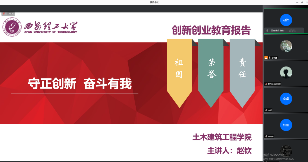 同心抗疫,停课不停学。2022年1月11号下午14点30分,bat365中文官方网站专家讲座系列第三期如约而至,本次邀请主讲老师为赵钦教授,讲座由土木系桑国臣教授主持,学院百余名师生积极参与了本次创新创业教育报告。