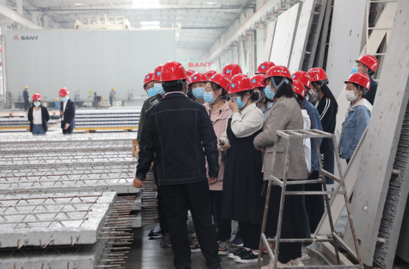 中建四局西北公司西安分公司相关负责人对各位老师和学生到来表示热烈的欢迎,介绍了公司及项目相关情况,希望通过现场调研能够更好地将教学理念与施工现场充分融合,为项目后续施工生产给予宝贵技术支持。随后,三一云城项目技术负责人介绍了项目概况、SPCS装配式体系及其施工工艺,并带领师生到三一筑工构件厂及现场实验楼参观调研了构件生产线及现场施工工艺。