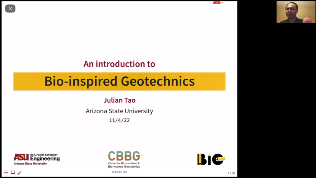 11月3日,应我院邀请,美国自然科学基金委杰出青年奖(CAREER Award) 获得者、美国亚利桑那州立大学陶军亮副教授应邀以线下和线上结合形式为全国岩土工程领域专家、学者作了题为“Bio-inspired Geotechnics”的学术报告。报告会由学院岩土工程所教授张志强主持。