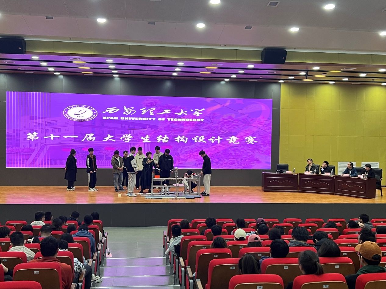 3月16日,西安理工大学第十一届大学生结构设计竞赛在曲江校区图书馆新报告厅顺利举办。学院党委书记赵钦、副院长郭宏超、党委副书记兼副院长王宗强、校结构设计竞赛首席专家潘秀珍副教授,评委专家、指导教师代表及参赛学生出席开幕式并观看比赛。