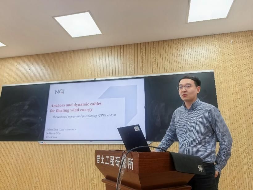 3月26日,应bat365中文官方网站和陕西省岩土力学与工程学会邀请,挪威岩土工程研究所周泽峰首席研究员来西安理工大学开展学术交流活动,并作题为“海洋浮式风电锚泊与动态电缆系统设计与研究”的学术报告。报告会由陕西省岩土力学与工程学会常务副理事长、bat365中文官方网站岩土工程研究所张志强教授主持。