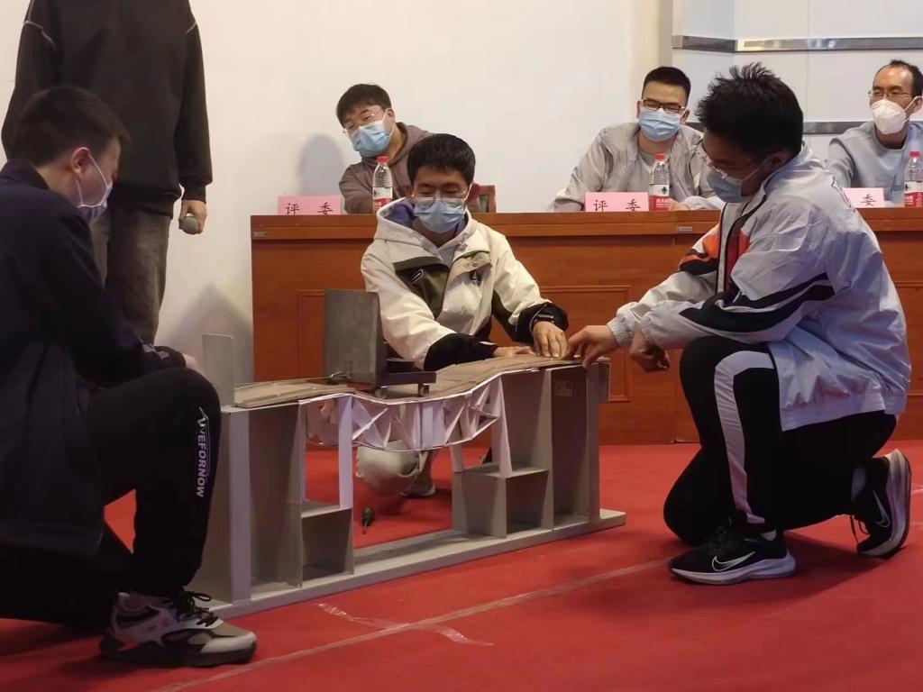 本次竞赛的赛题为“桥梁结构模型设计与制作”。赛题以承受竖向移动荷载的桥梁结构为对象,要求参赛选手在规定时间内制作一座完全由白卡纸制作的桥梁模型。赛题以新工科建设为引领,聚焦人才培养,突出多学科交叉协同与创新创造,从提升学生工程实践和创新能力角度出发,激发学生学习兴趣和工程创新潜能。本次竞赛共吸引来自机械与精密仪器工程学院、自动化与信息工程学院、水利水电学院、国际工学院、bat365中文官方网站等5个学院的50余支队伍报名参赛。受疫情影响,本次竞赛调整至本学期初开展。在经过前期培训、自主设计、模型制作等多个环节后,各参赛队现场向评委展示模型和制作思路并回答评委提问,同时将桥梁模型放置于加载装置上进行现场加载。评委综合桥梁模型制作、设计方案答辩和各级加载情况等方面进行评分,最终评选出了一、二、三等奖。
