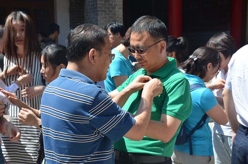 在革命纪念馆,教工党员们首先站好队伍,由赵钦副书记宣读了《教职工党员党建及党风廉政建设有关知识答题活动的表彰决定》,对积极参与答题活动并取得优异的成绩的教工党员予以表彰;接着,党员两两之间佩戴党徽,庄严的仪式不仅体现了新时期党员的精神风貌,并且提醒党员要牢记作为一名共产党员的光荣使命;然后在王青耀书记的带领下,全体党员重温入党誓词,不忘初心,恪守承诺;随后,王青耀书记作了总结发言,他希望作为党员,要时刻牢记自己的党员身份,时刻坚守党员的信念,树好形象,做好表率,始终做到政治信仰不变、政治立场不移、政治方向不偏;最后,所有党员参观了纪念馆的所有展厅。