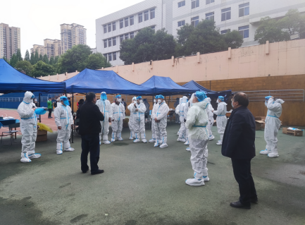 5月12日晚8:00,在接到学校关于征集金花校区和家属区核酸检测教工志愿者的任务后,学院党委第一时间向全体教工党支部发出号召,学院教工闻令而动,仅一个小时,由28名教工组成的先锋队迅速组建,多名非党员教师也主动加入其中。